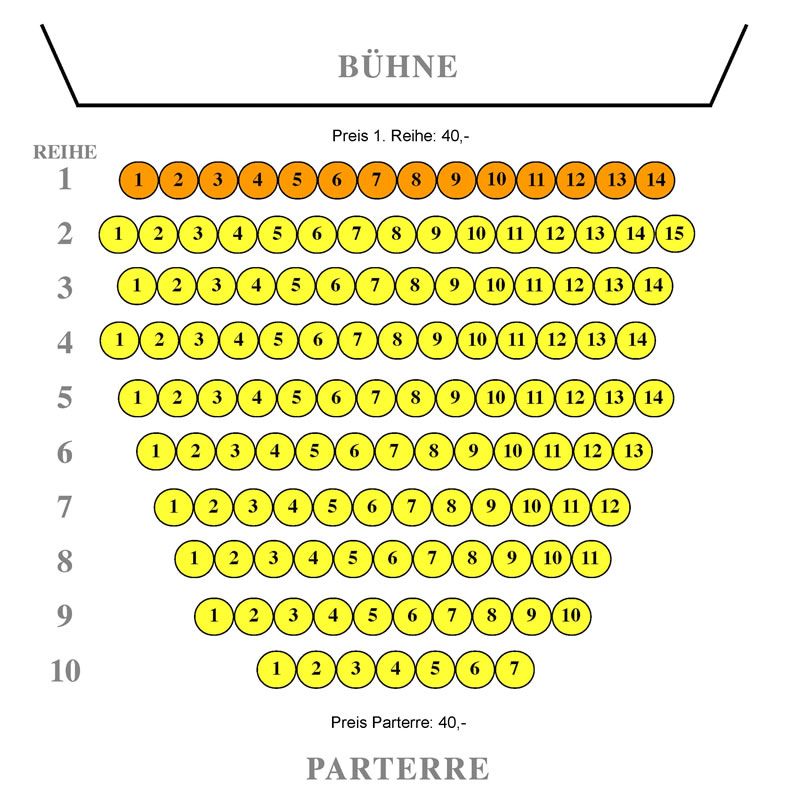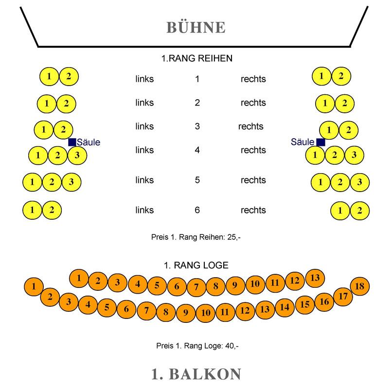 25,- "Standard-Ticket": Stalls, 1st tier left & right, 2nd tier